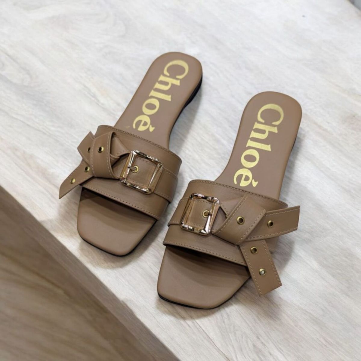 These Flat Mae Buckle Embellished Brown Slippers are the perfect combination of style and comfort. With a trendy buckle embellishment and a flat design, these slippers are perfect for everyday wear. Made with quality materials, they provide superior comfort and durability. Elevate your footwear collection with these stylish slippers.